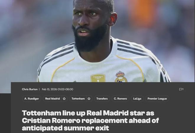 罢贰础惭迟补濒办消息,热刺正考虑求购吕迪格,这名32岁的中卫合同今夏就将到期。