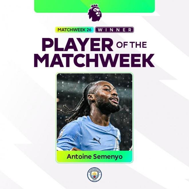 在英超第26轮曼城3-0完胜富勒姆的比赛,塞梅尼奥传射建功,赛后以39%的得票率当选官方评选的联赛本轮最佳球员。至此,这位26岁的加纳边锋加盟曼城仅一个月,已在8场各项赛事中贡献5球2助,场均直接制造近1球。从伯恩茅斯到曼城,从“樱桃军团大腿”到“蓝月尖刀”,塞梅尼奥用堪称恐怖的适应速度,证明了瓜迪奥拉的眼光有多毒辣。